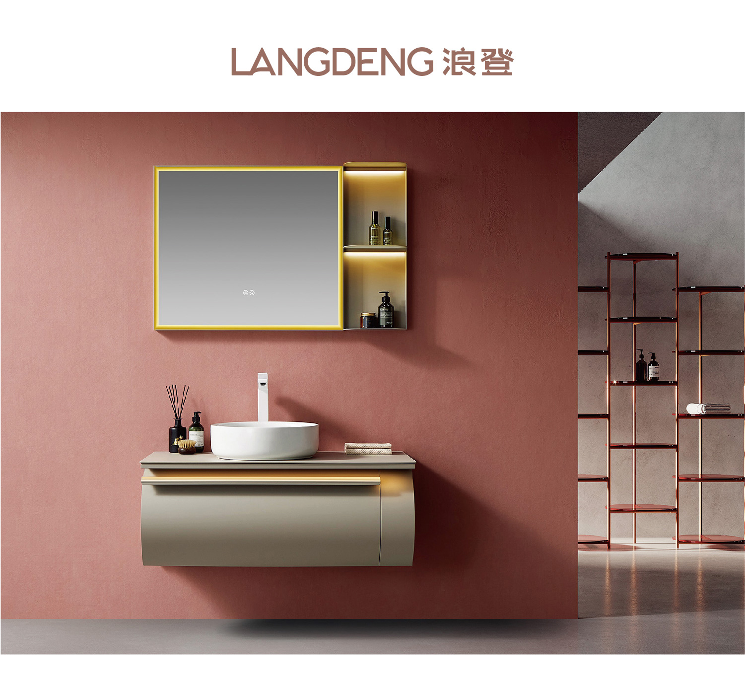 圓弧型臺面空間寬敞平整,大氣簡潔,洗漱用品隨意擺放不顯擁擠。沿著桌面邊緣安裝有一圈淡黃色燈槽,具有藝術(shù)氣息的極簡創(chuàng)意。