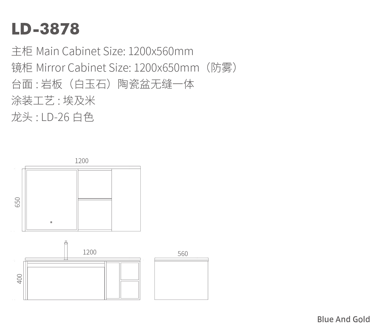 【主 柜】Main Cabinet Size: 1200x560mm【鏡 柜】Mirror Cabinet Size: 1200x650mm(防霧)【臺 面】: 巖板(白玉石)陶瓷盆無縫一體 【涂裝工藝】: 埃及米【龍 頭】: LD-26白色