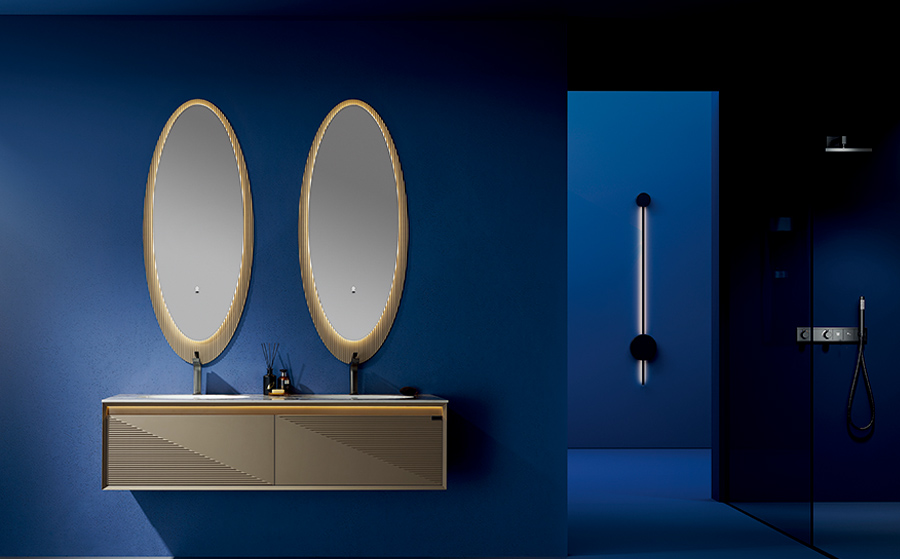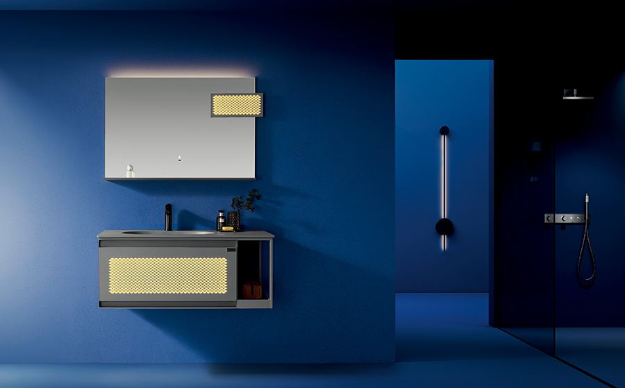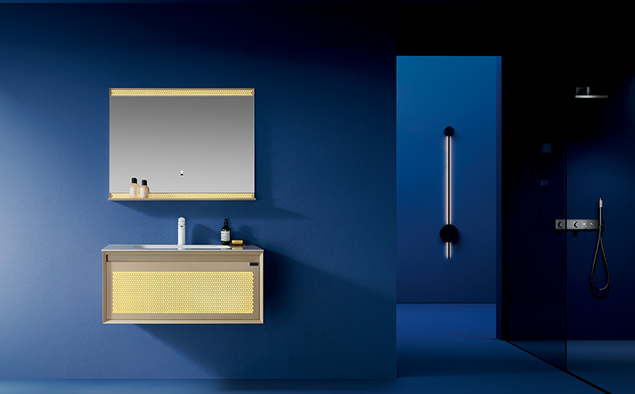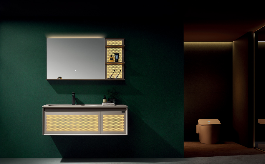 設(shè)計的獨(dú)特品味與實(shí)用性的巧妙融合,為您帶來了一場獨(dú)一無二的視覺盛宴。每款浴室柜以灰色門板菱形 鏤空透光為特色,光線穿透菱形紋理,呈現(xiàn)出一種極富韻味的獨(dú)特效果。
