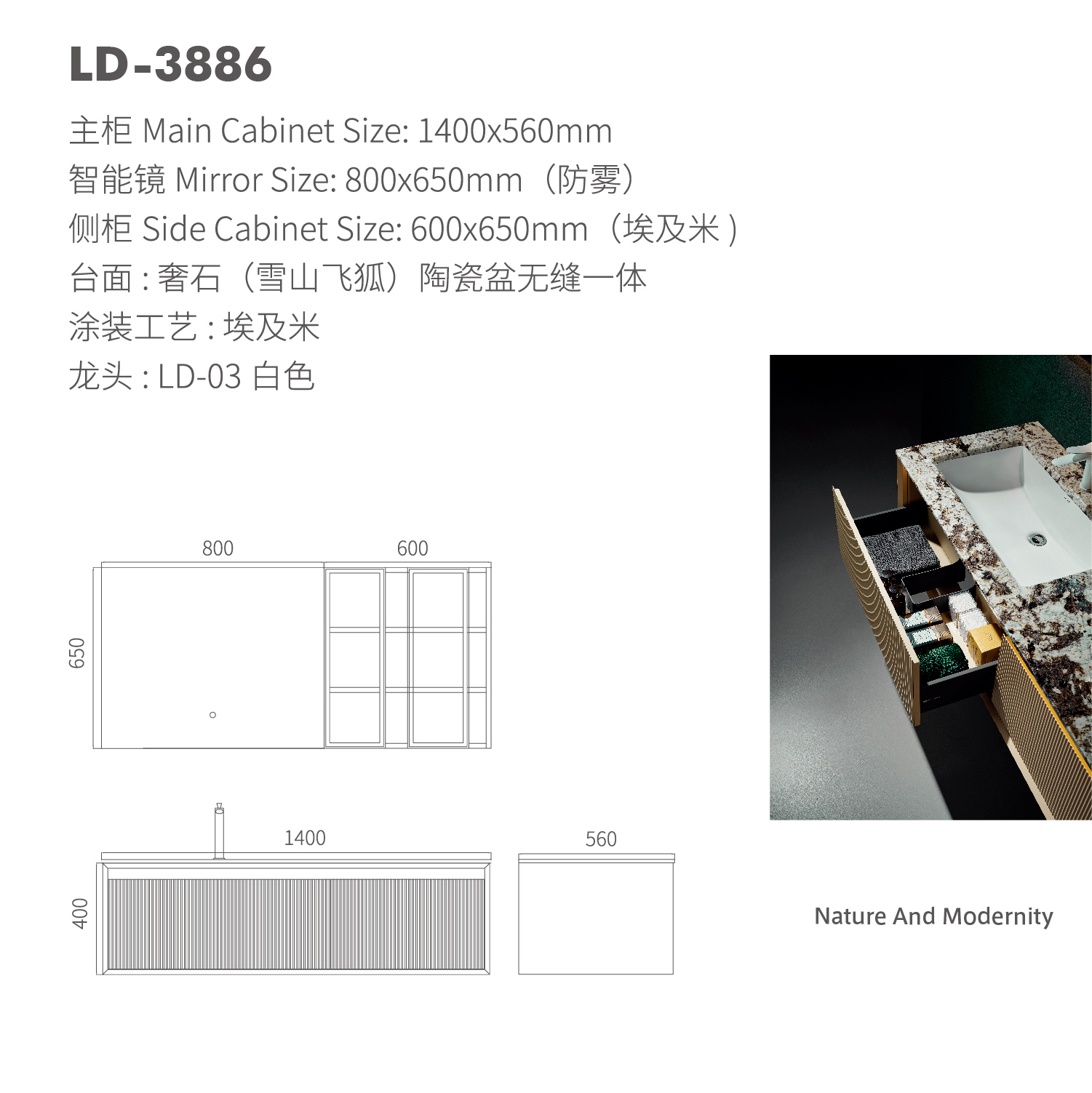 主柜 Main Cabinet Size: 1400x560mm