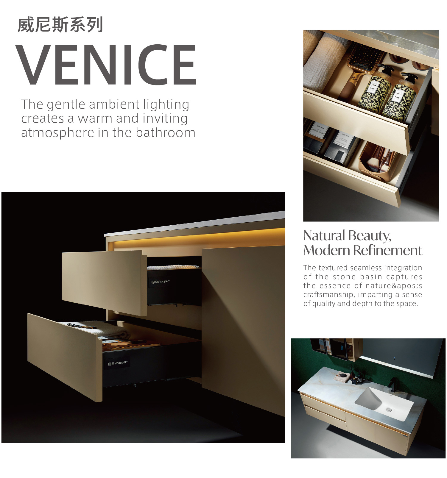 【主 柜】 Main Cabinet Size: 1500x560mm【智能鏡】 Mirror Size: 900x650mm(防霧)【側 柜】 Side Cabinet Size: 600x650mm(埃及米)【臺 面】 : 巖板(白玉石)陶瓷盆無縫一體【涂裝工藝】 : 埃及米【龍 頭】 : LD-18 黑色