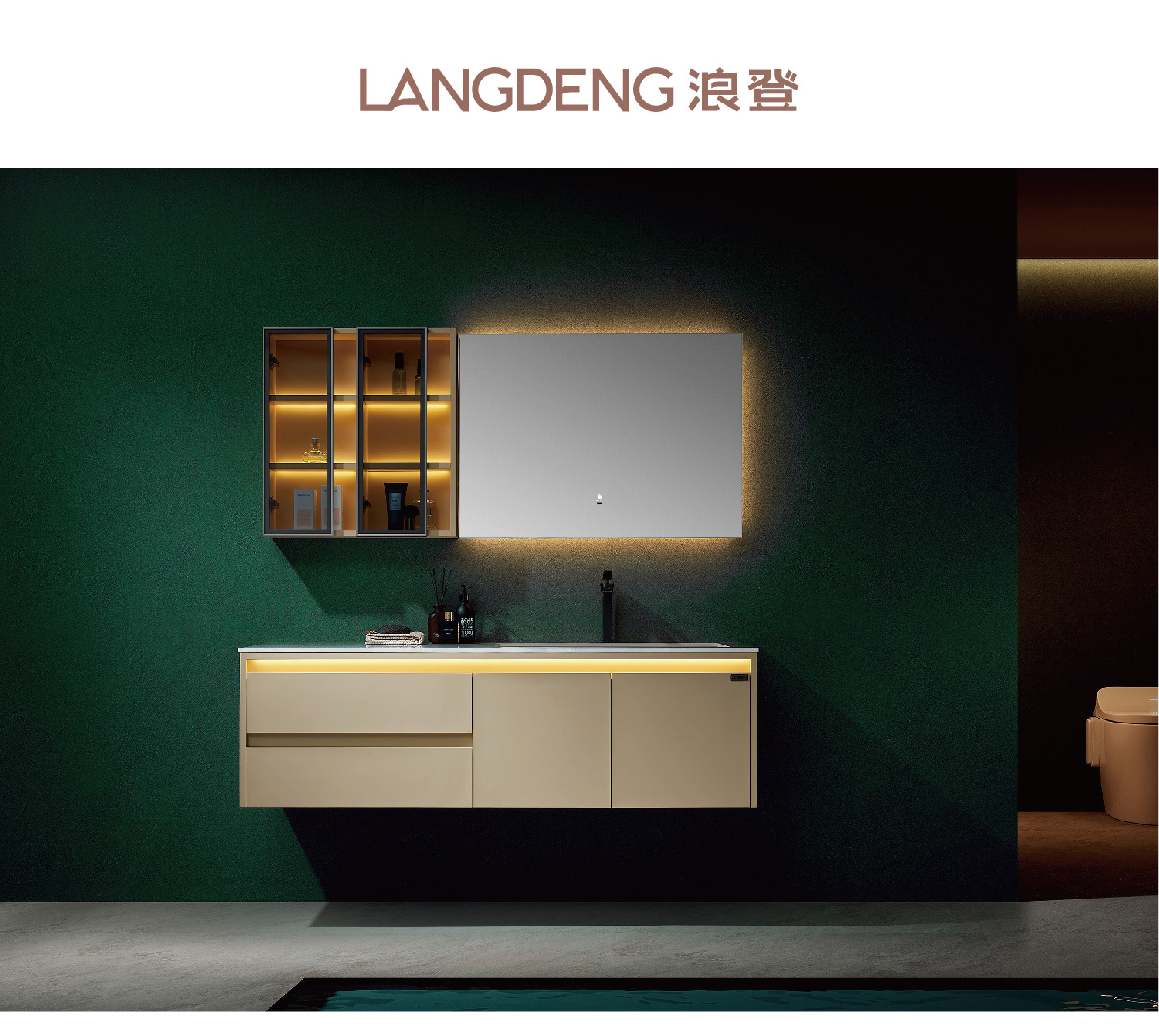 柔和的氛圍燈營造出溫馨的環境,如同輕輕的擁抱。而透光玻璃鏡柜則增添了神秘感,與光影互相交織, 勾勒出浴室的詩意畫卷。